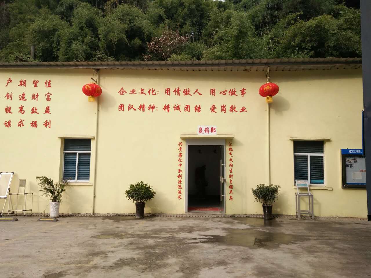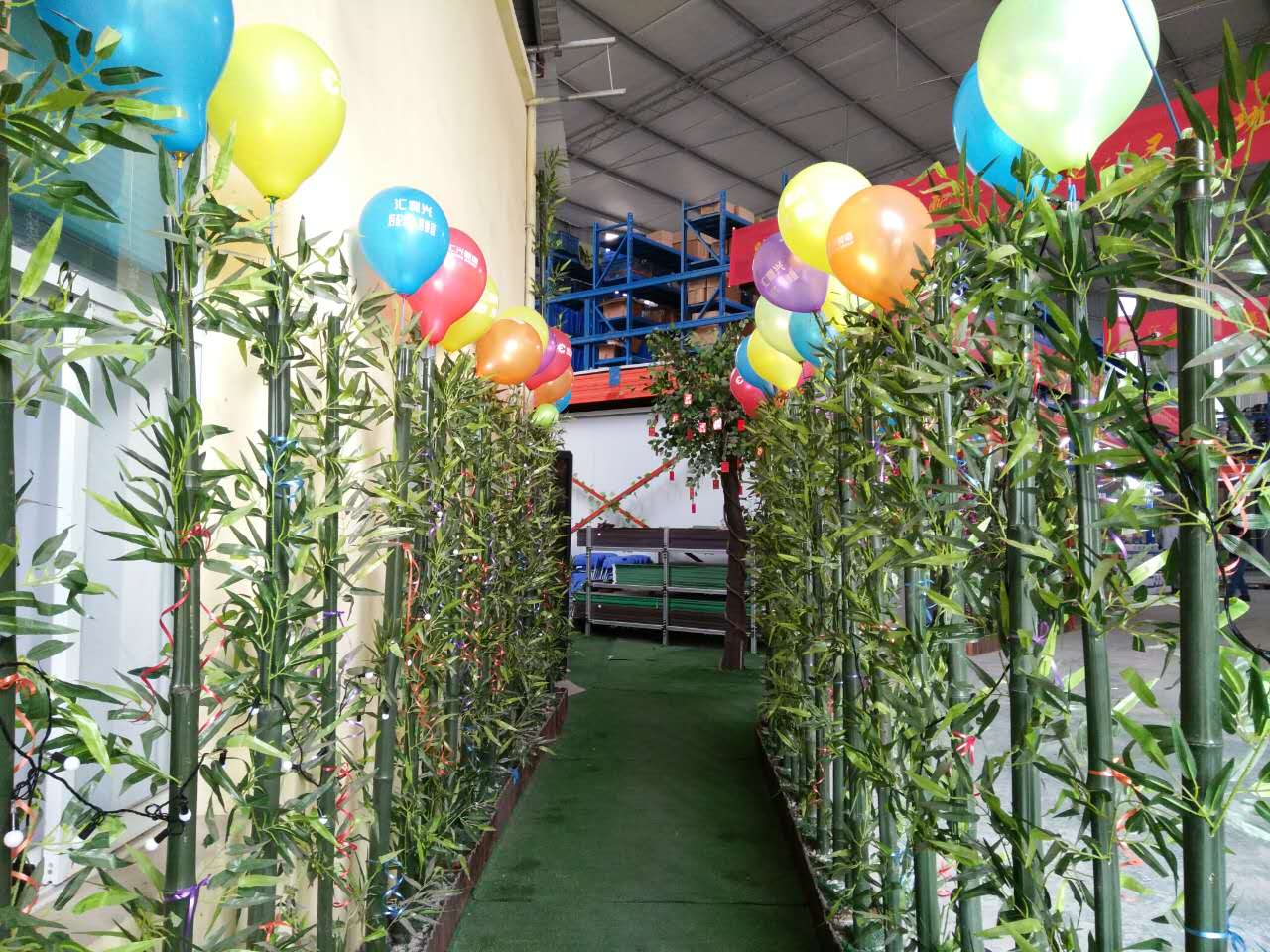 張燈結(jié)彩,彩旗飄飄-好山好水好地方好彩頭 陽光普灑在匯利興墻面上紅彤彤的燈籠兒掛立兩旁彰顯著匯利興紅火的前方,進而也突顯著匯利興企業(yè)文化與團隊精神同時也在溫暖著匯利興人的心 精神抖擻的匯利興人在認真的工作 綠草青竹有著無顏六色的彩帶與氣球兒的點綴成為了一顆璀璨耀眼的明珠,一個“世外竹源”。